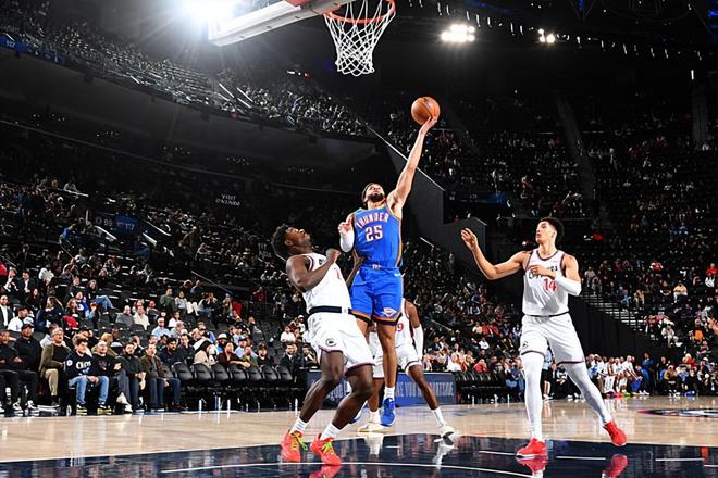 本场比赛中,雷霆的替补后场新星阿杰-米切尔(Ajay Mitchell)的表现又一次令人眼前一亮。米切尔全场出场19分38秒,投篮10中4,三分线外1中0,得到了8分4篮板3助攻4抢断的数据,还有2次失误和2次犯规,正负值更是达到了全场最高的+31。米切尔在进攻端的手感还是比较一般的,他并没有得到太多的分数,他的进攻效率也不是特别理想。不过米切尔也是展现出了一定的传球能力和组织能力,他在支配球和传导球方面还是做得相当不错的。最关键的是,米切尔在防守端的表现令人刮目相看,他直接变身防守大闸并且在防守端起到了决定性的作用。米切尔帮助雷霆第二阵容建立起了巨大的领先优势,这也是雷霆最终能够比较顺利地拿下本场比赛胜利的重要因素。